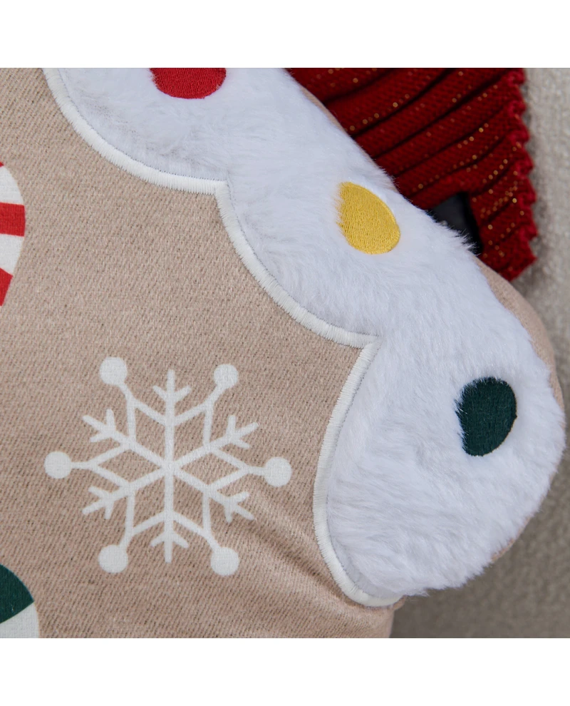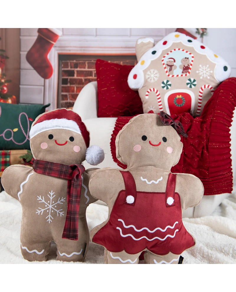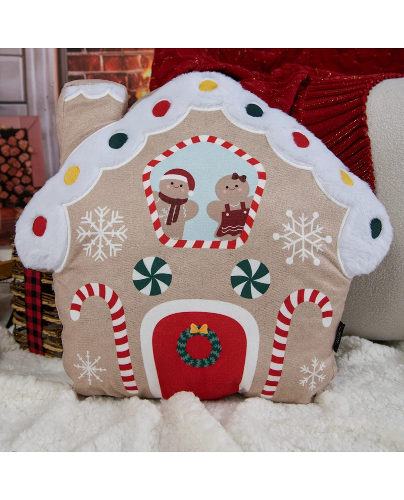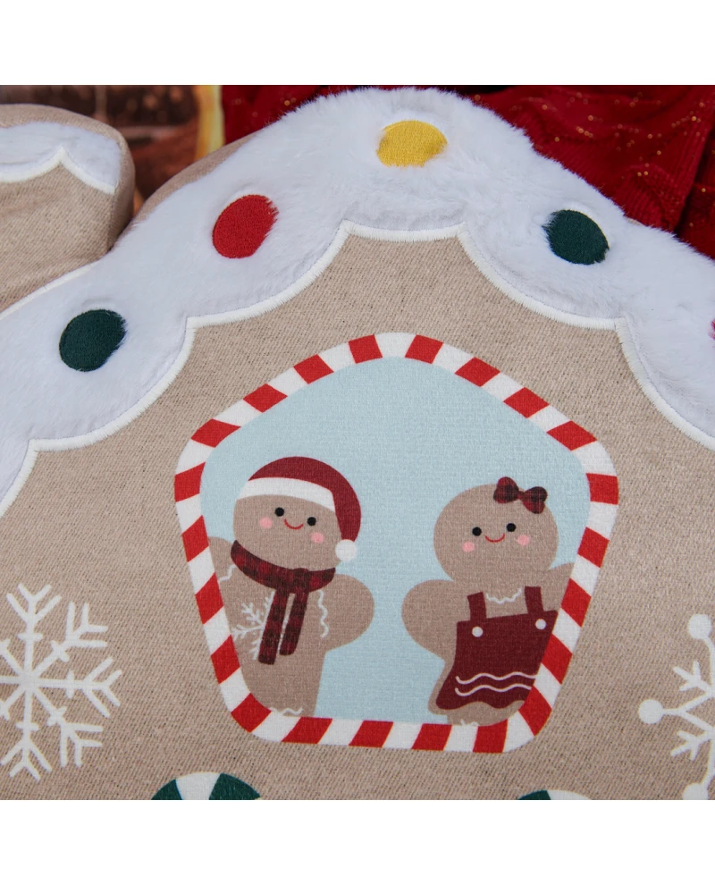 Inspirada nas tradicionais casinhas de biscoito, esta almofada temática traz toda a magia do Natal para a decoração. Com estampa detalhada de bengalas doces, flocos de neve e a simpática dupla de biscoitos na janela, é uma peça encantadora para enfeitar sofás, poltronas e camas, deixando o ambiente acolhedor e festivo.