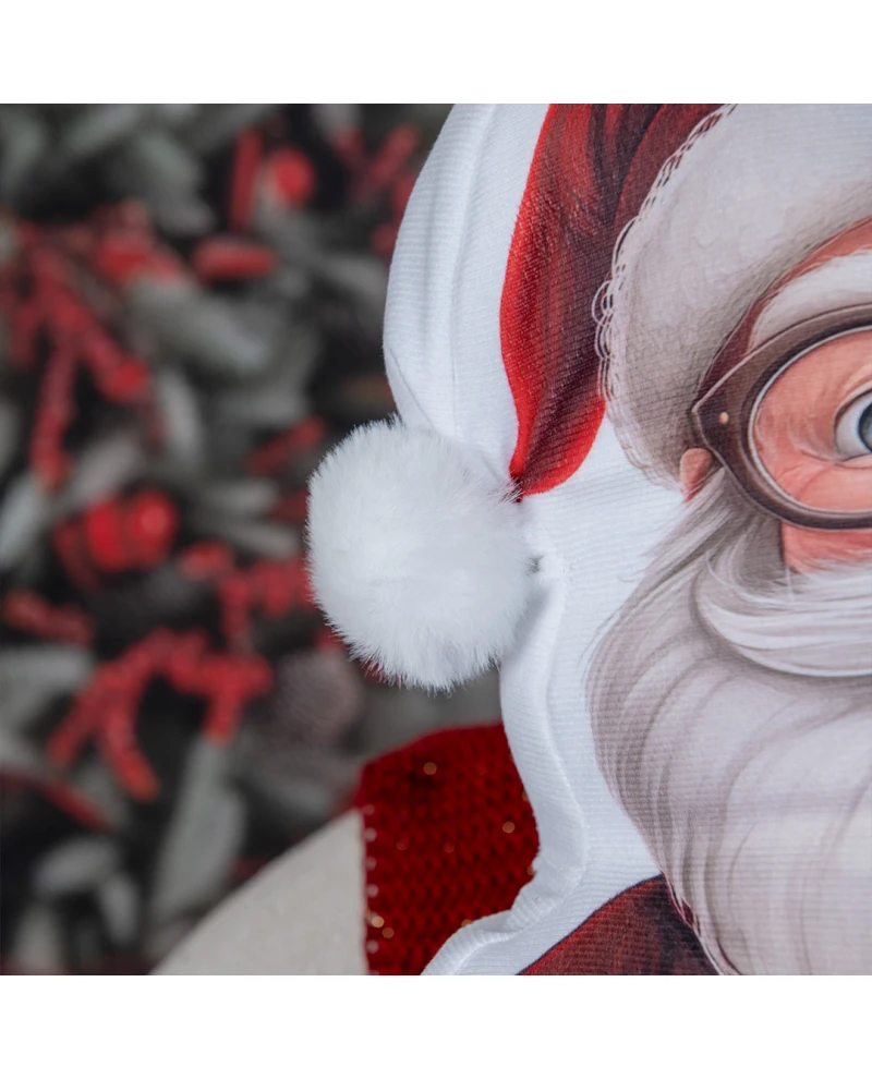 Encante sua decoração natalina com essa charmosa almofada em formato de Papai Noel. Produzida em tecido macio e com estampa detalhada de alta qualidade, ela traz o bom velhinho com seus óculos, barba fofa e tradicional traje vermelho, transmitindo toda a magia do Natal. Perfeita para decorar sofás, poltronas, camas ou compor cantinhos especiais, levando aconchego e alegria para a casa.