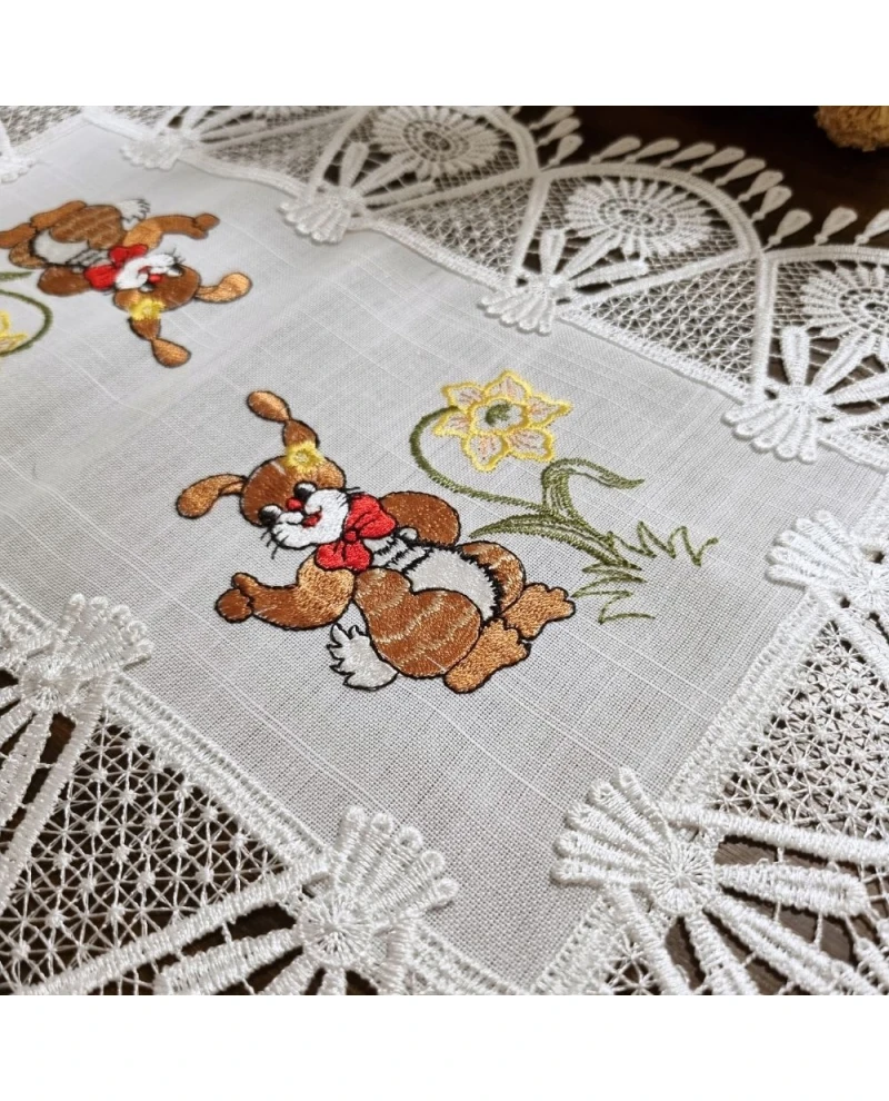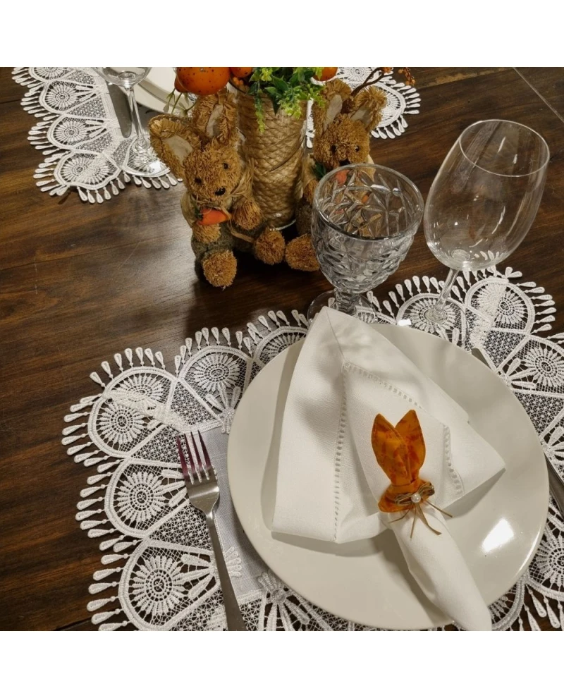 O Americano de Páscoa com Guipure é ideal para quem deseja uma mesa posta elegante, delicada e com acabamento sofisticado nessa data especial. O detalhe em guipure adiciona um toque clássico e refinado à peça, elevando a decoração da mesa e criando composições encantadoras para almoços e celebrações de Páscoa.