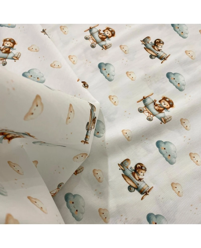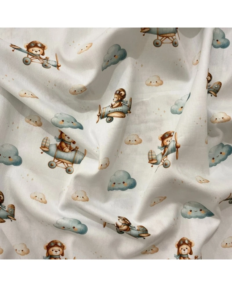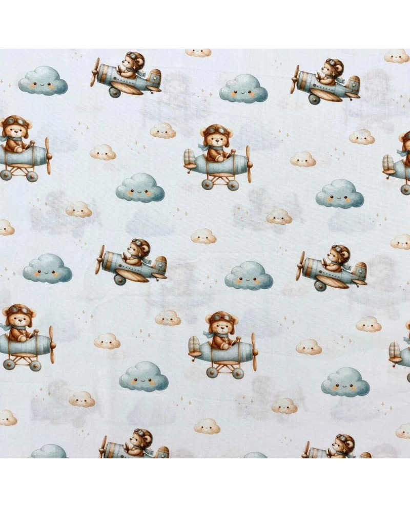 Tricoline Digital branco c/ avião/urso/nuvem - 100% Algodão 1,50 Largura