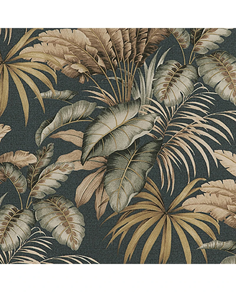 O Acquablock Palmares Petróleo destaca folhagens exuberantes em tons terrosos e azulados sobre um fundo escuro, criando contraste e profundidade. Um design marcante que combina o toque tropical à elegância contemporânea.