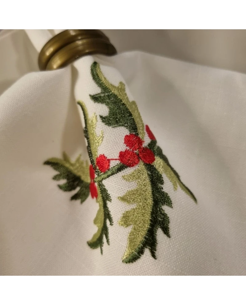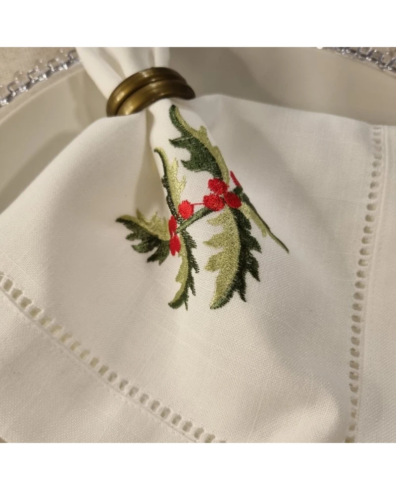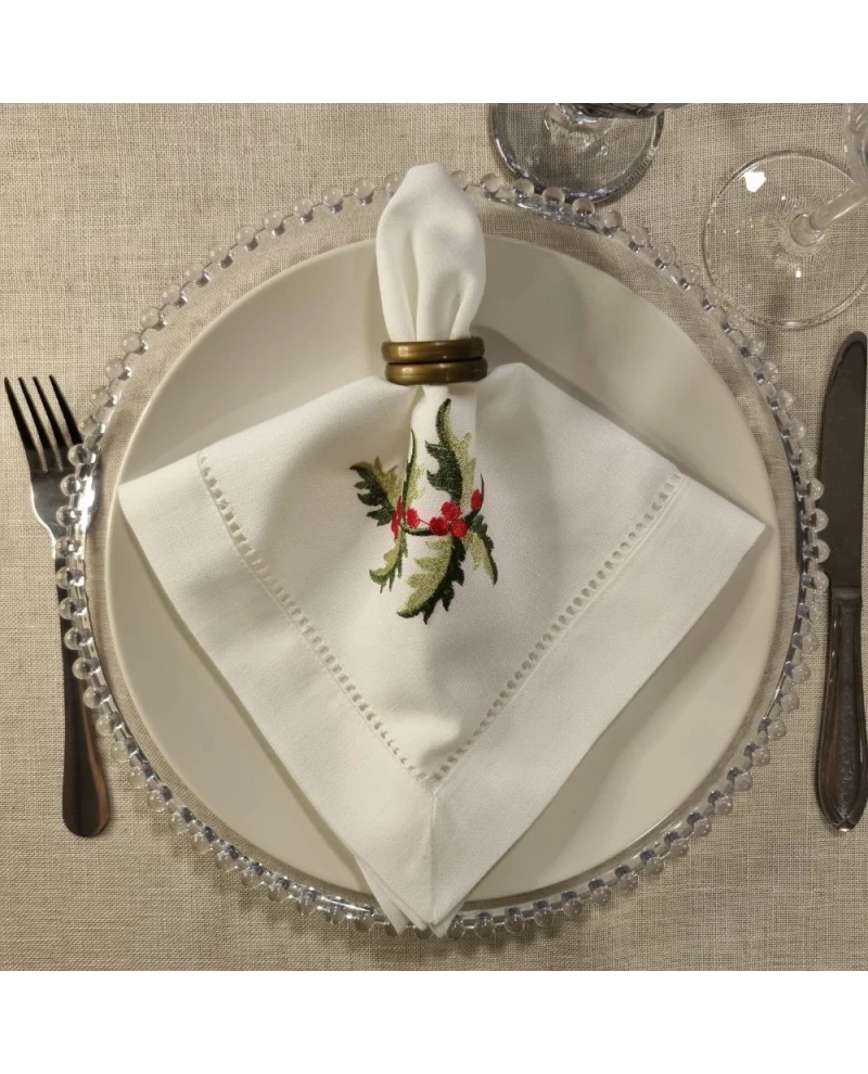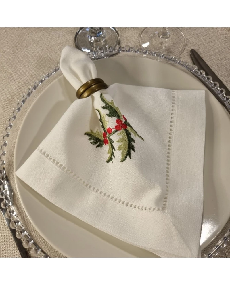 Este Guardanapo de Linho com ponto ajur e bordado natalino foi criado para quem busca uma mesa posta refinada, com aquele acabamento clássico que nunca sai de moda. O linho proporciona textura premium, toque suave e caimento impecável, enquanto o ponto ajur aplicado ao redor da peça reforça a estética artesanal e sofisticada que se diferencia dos guardanapos comuns. O bordado delicado com folhas e frutos natalinos adiciona um charme discreto, perfeito para quem prefere uma decoração elegante e minimalista.