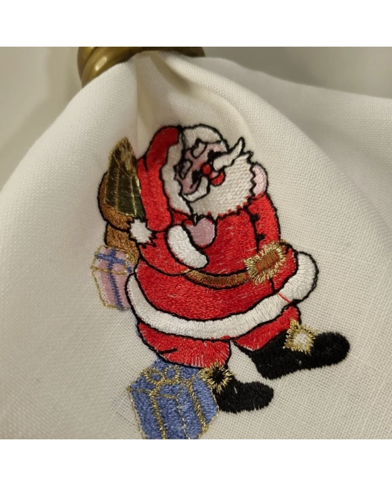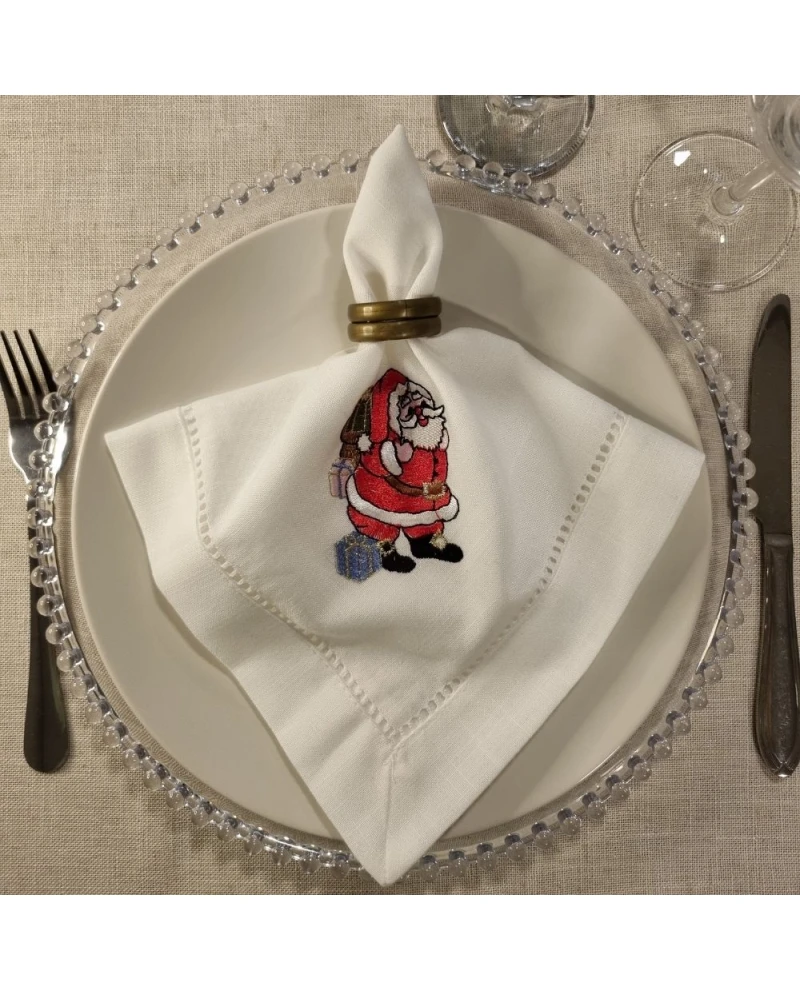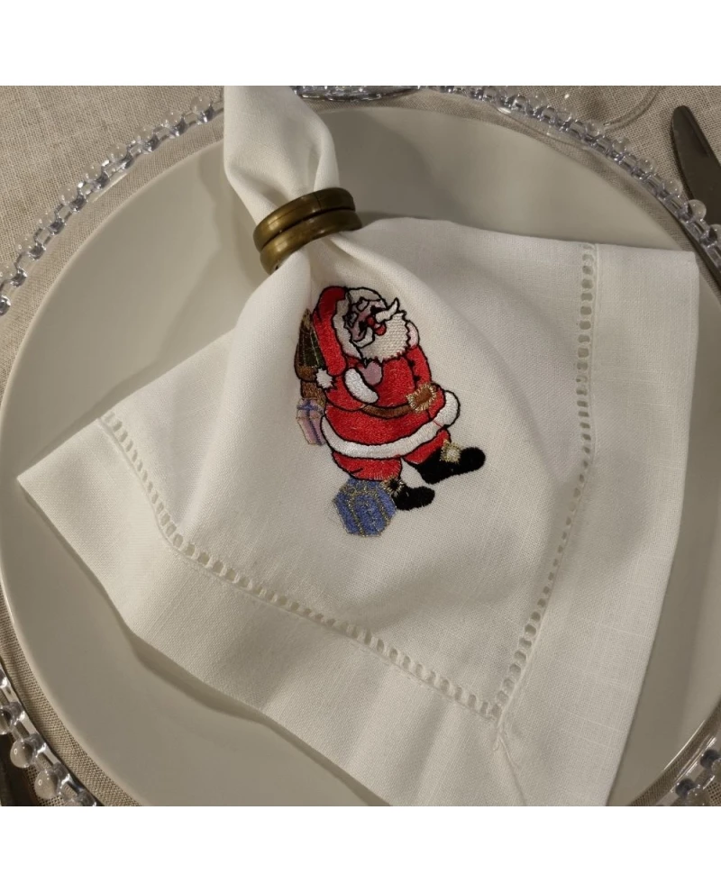 Este Guardanapo de Linho com ponto ajur e bordado de Papai Noel foi desenvolvido para quem deseja uma mesa posta natalina refinada, mas com um toque divertido e cheio de personalidade. O linho oferece textura premium, excelente caimento e resistência, superando amplamente a qualidade dos guardanapos sintéticos comuns. O ponto ajur contornando a peça adiciona acabamento artesanal e sofisticado, enquanto o bordado do Papai Noel traz encanto, cor e destaque na medida certa.