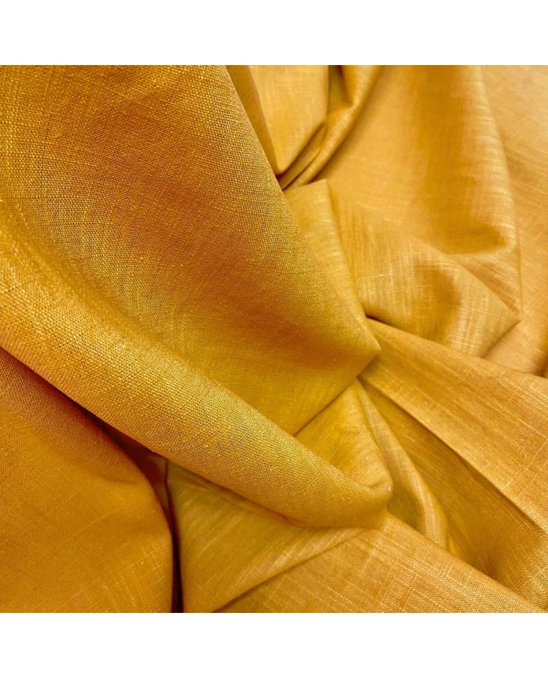 O Linho Italiano Cúrcuma é um tecido nobre e vibrante, ideal para criações que combinam elegância, conforto e autenticidade. Produzido em 100% linho puro de origem italiana, oferece toque suave, caimento leve e excelente respirabilidade, traduzindo o equilíbrio perfeito entre luxo e naturalidade.