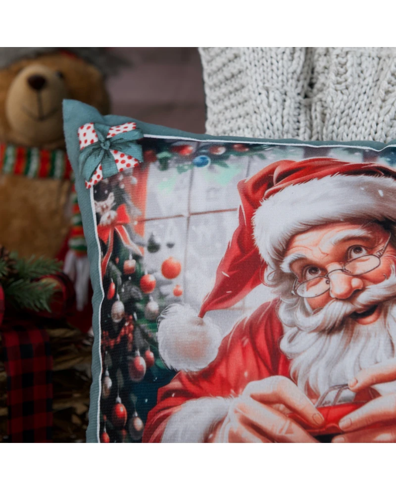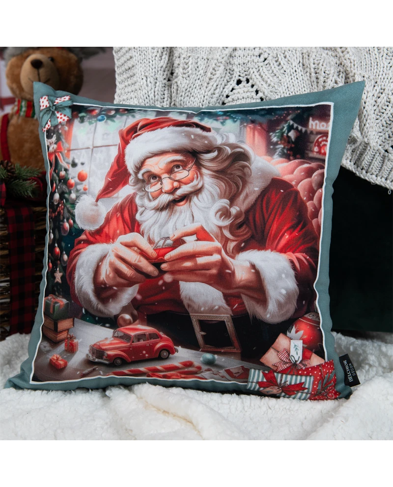Capa de almofada com estampa do Papai Noel em sua oficina, preparando brinquedos e espalhando o espírito natalino. Uma peça encantadora que traz a magia e o aconchego do Natal para sua decoração. Ideal para quem ama detalhes cheios de encanto e tradição.