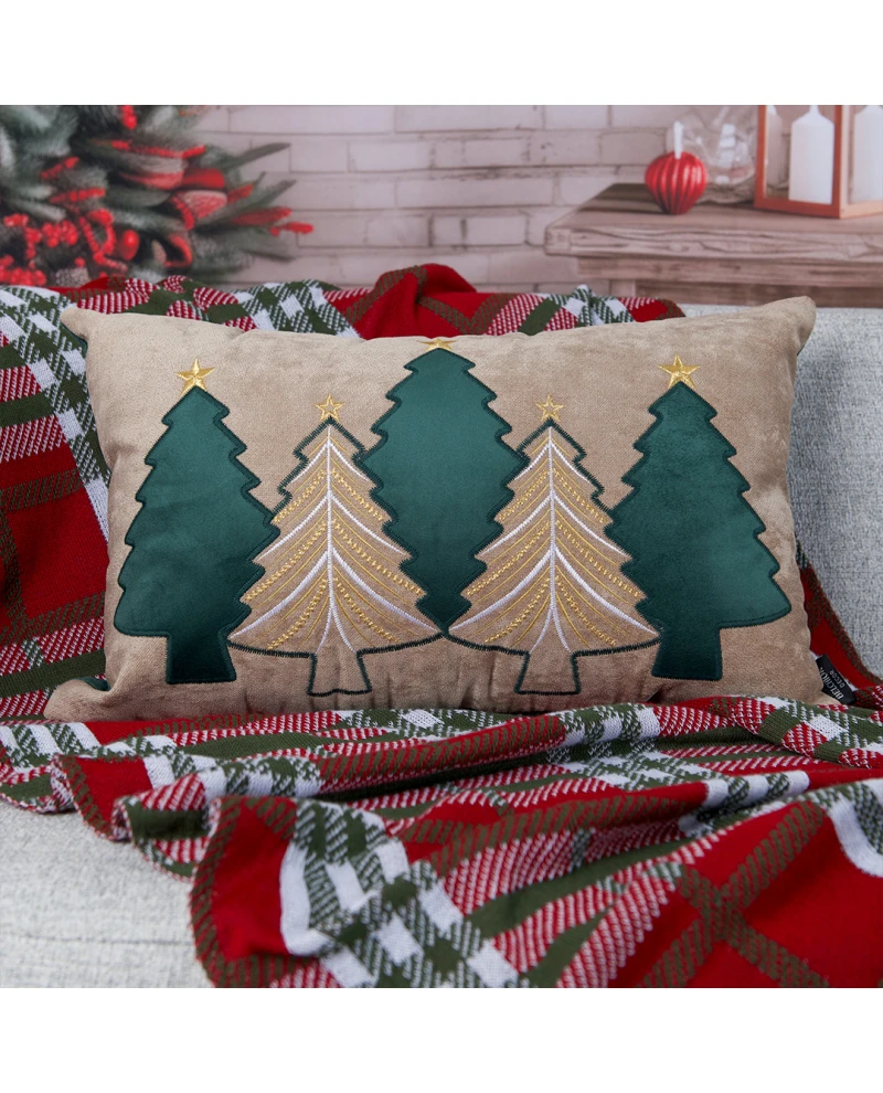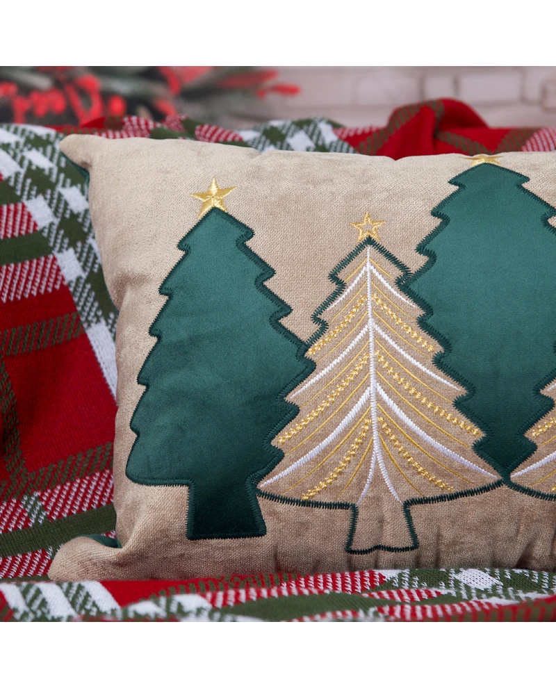 Capa de almofada retangular com aplicação de pinheiros verdes e bordados dourados, que remetem à magia e ao brilho do Natal. O fundo em tom bege suave destaca os detalhes das árvores e das estrelas, criando uma composição elegante e festiva. Produzida em tecido macio e de toque aveludado, é perfeita para trazer o clima natalino à sua sala, quarto ou varanda, combinando facilmente com outras peças da decoração.