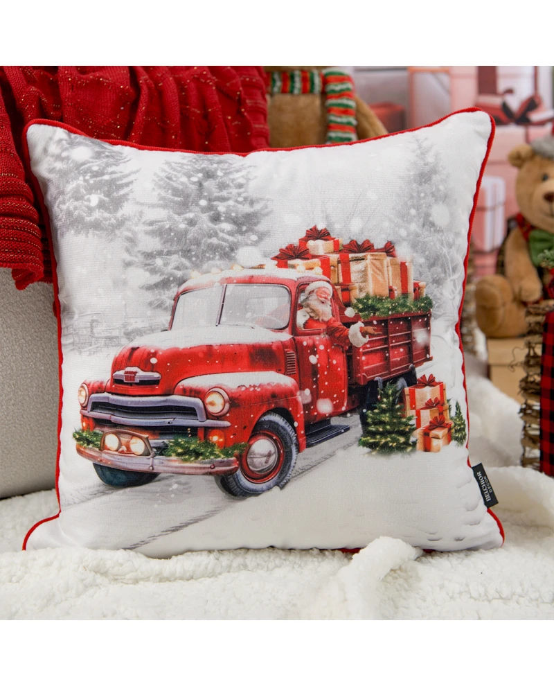 Clássica e cheia de charme, esta capa de almofada combina o espírito natalino com um visual retrô encantador. O caminhão vermelho de Papai Noel, cercado de neve e presentes, cria uma cena acolhedora que transforma qualquer ambiente em um verdadeiro cenário de Natal.