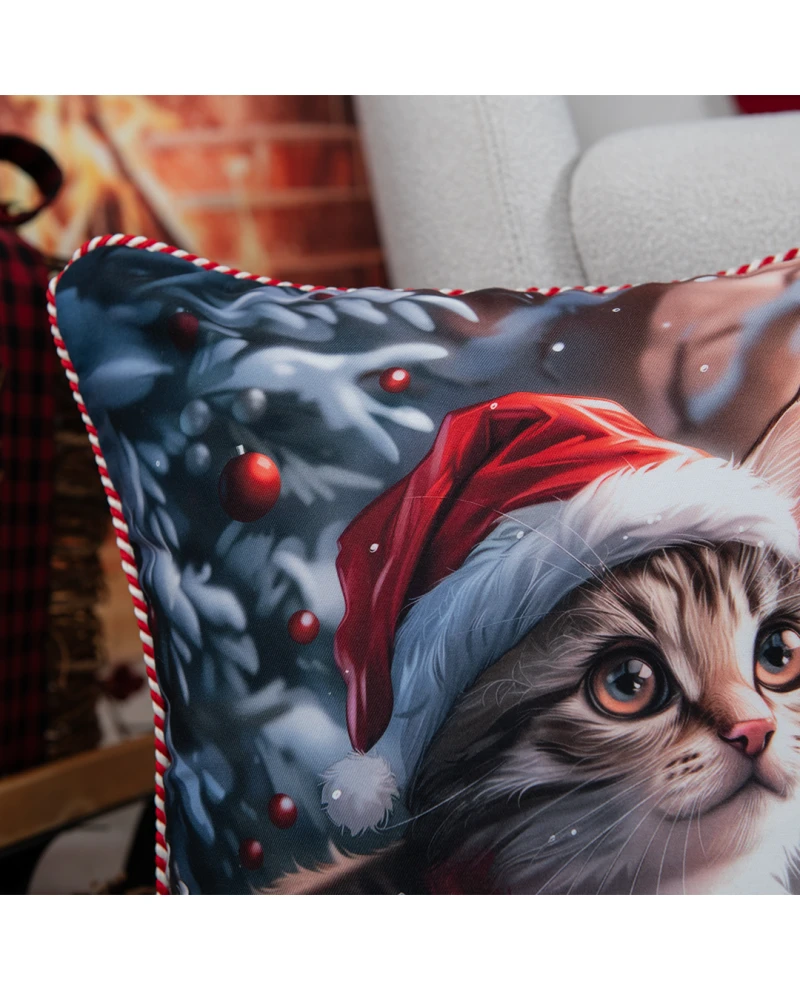 Capa de Almofada Natalina com Cordonê - Gatinho 43x43cm