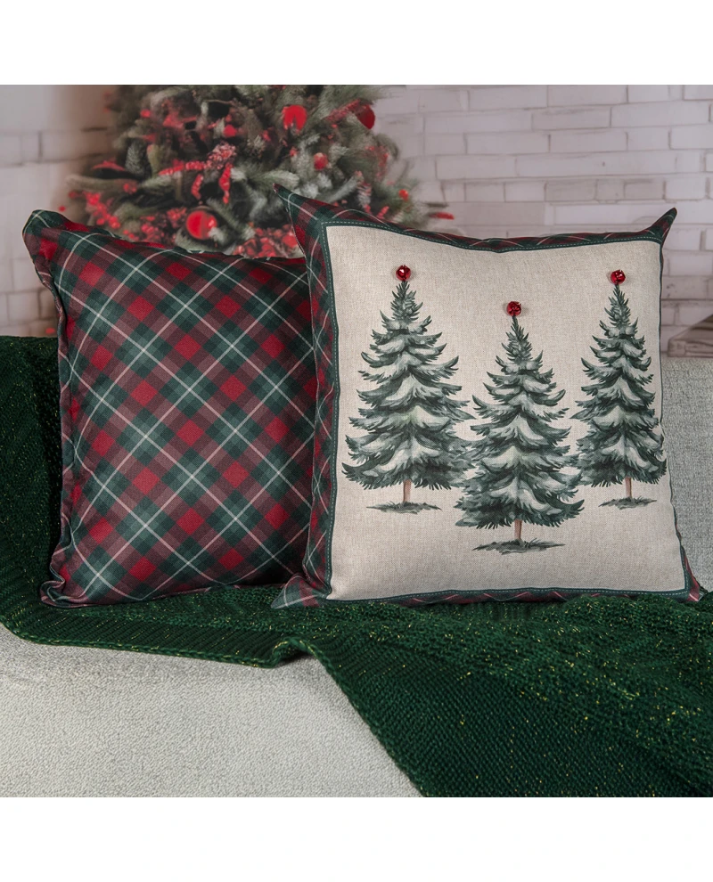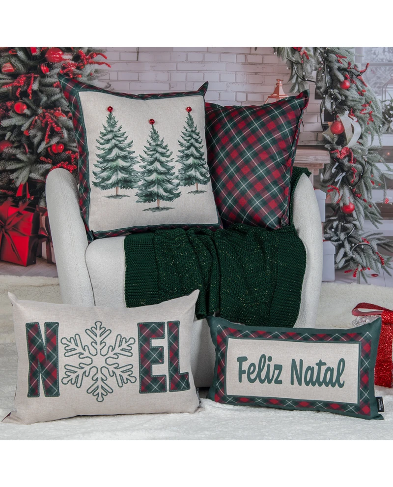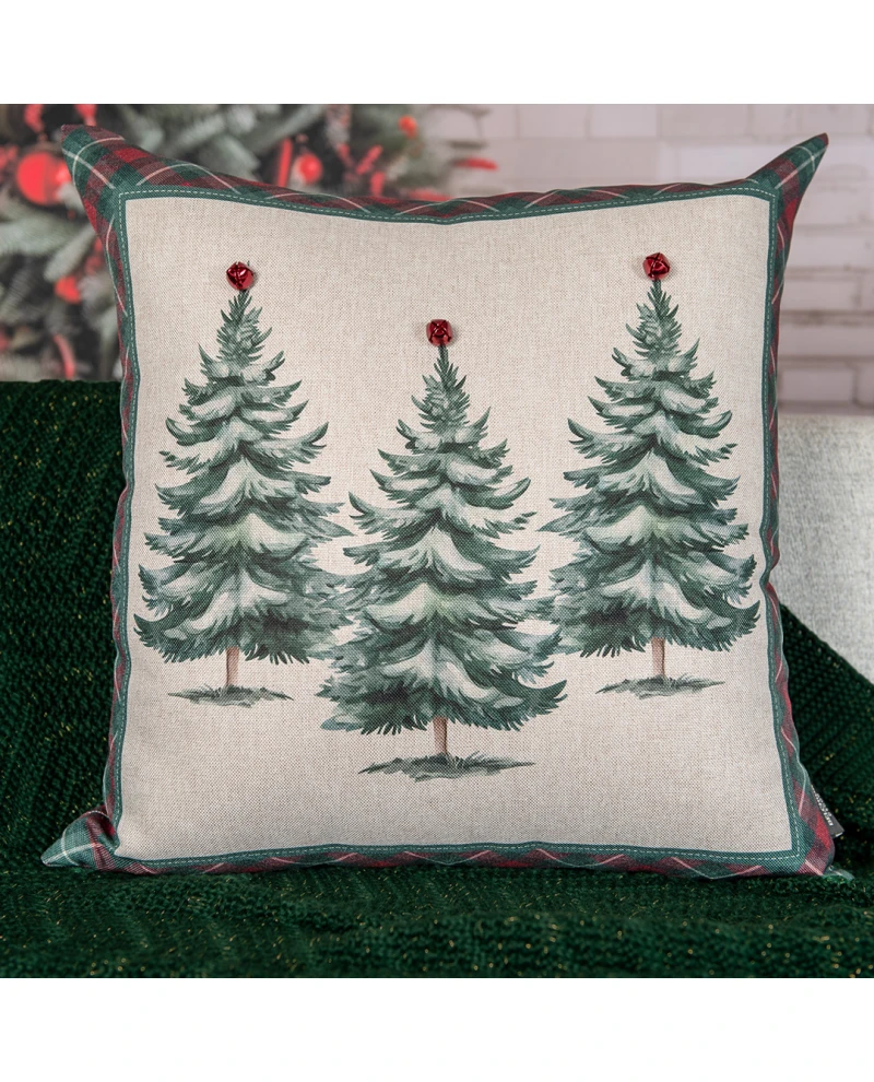 Capa de almofada com estampa de três pinheiros nevados, trazendo o charme natural do Natal em tons de verde e bege. O design ganha um toque especial com aplicações delicadasde três guizos, que simulam pequenas bolinhas natalinas. O contorno em tecido xadrez completa o visual com um ar rústico e acolhedor. Perfeita para compor a decoração de fim de ano com elegância e aquele toque artesanal que faz toda diferença.