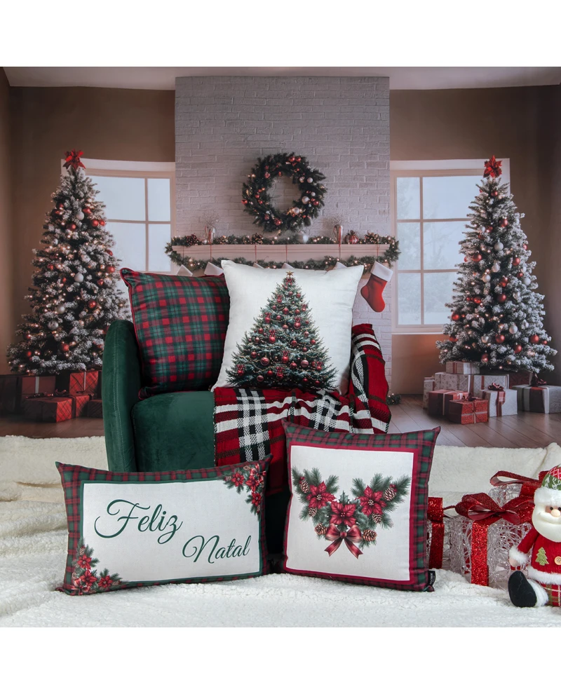 Elegante e tradicional, essa capa de almofada une o charme do xadrez natalino à delicadeza das flores e pinhas. Os tons clássicos de verde e vermelho criam uma composição acolhedora e festiva, perfeita para transformar o ambiente em um cenário cheio de encanto e espírito de Natal.