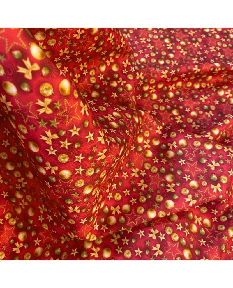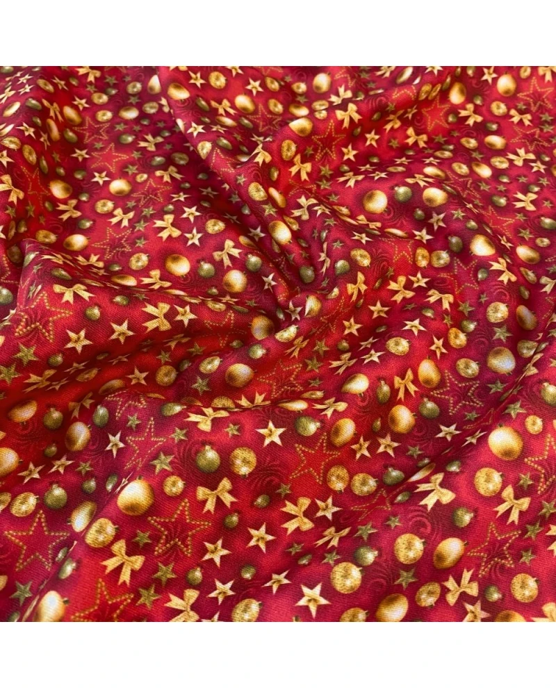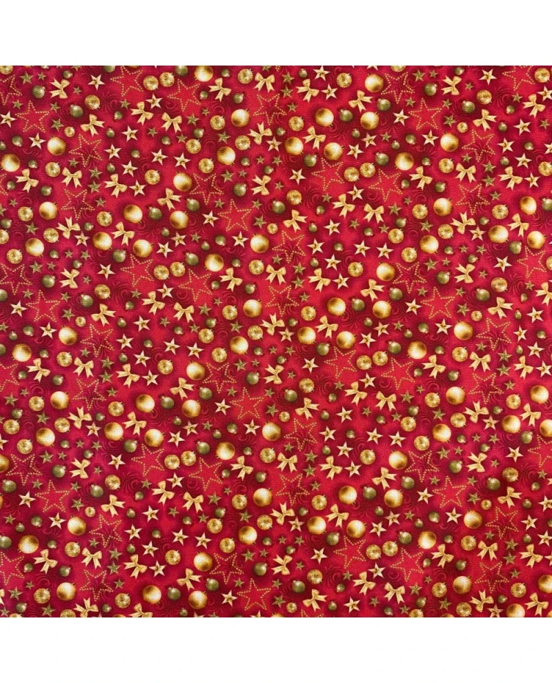 O Tricoline Digital Natalino Vermelho com Estrelas e Bolas Douradas é ideal para quem deseja criar peças temáticas com brilho, elegância e alto impacto visual. A estampa traz estrelas, laços e bolas douradas distribuídas sobre um fundo vermelho intenso, criando uma composição festiva e sofisticada que transforma qualquer projeto artesanal.