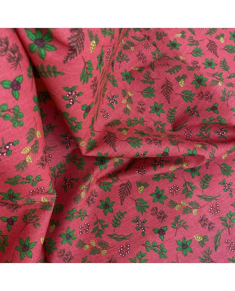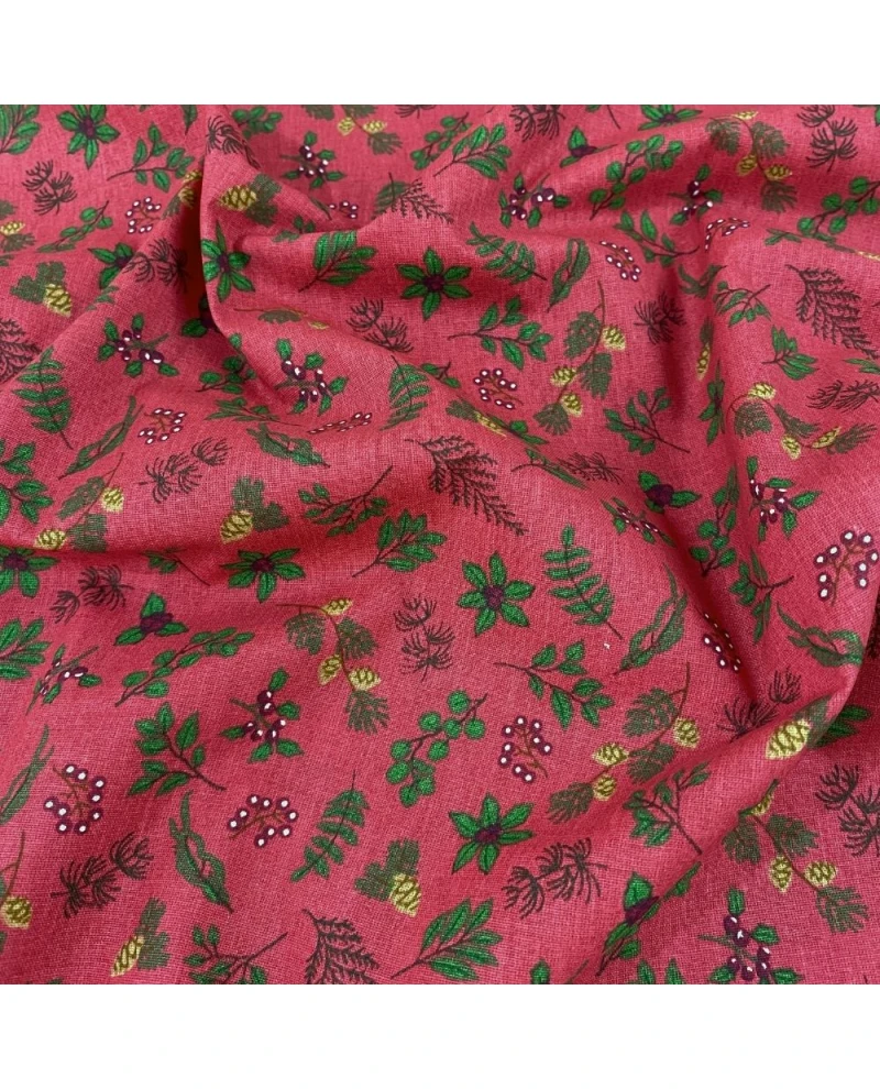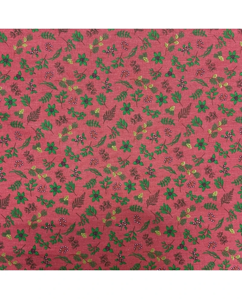 Com fundo verde intenso e estampa delicada de folhagens, flores e pinhas em tons de vermelho e amarelo, o tecido transmite o clima acolhedor e festivo do Natal. É ideal para a confecção de toalhas de mesa, jogos americanos, guardanapos, enfeites, patchwork, bonecos e lembranças natalinas, trazendo charme e elegância artesanal a cada criação.