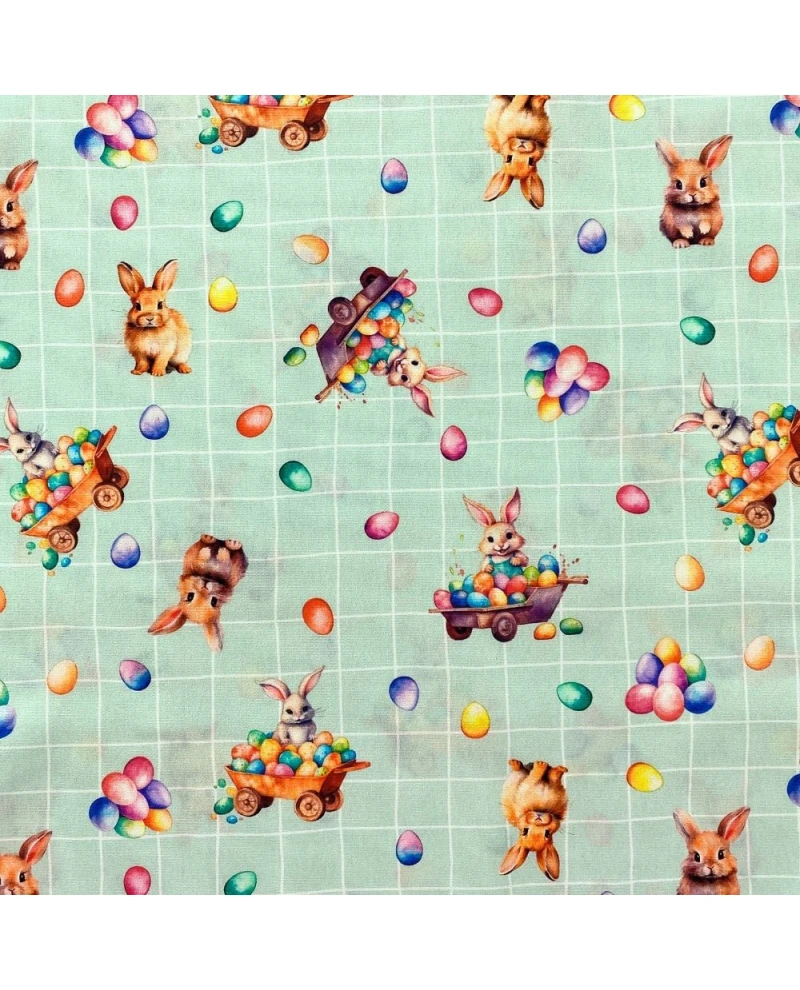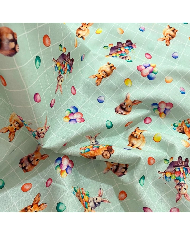 Tricoline Estampa Digital Xadrez c/ coelhos - 100% Algodão 1,50 Largura