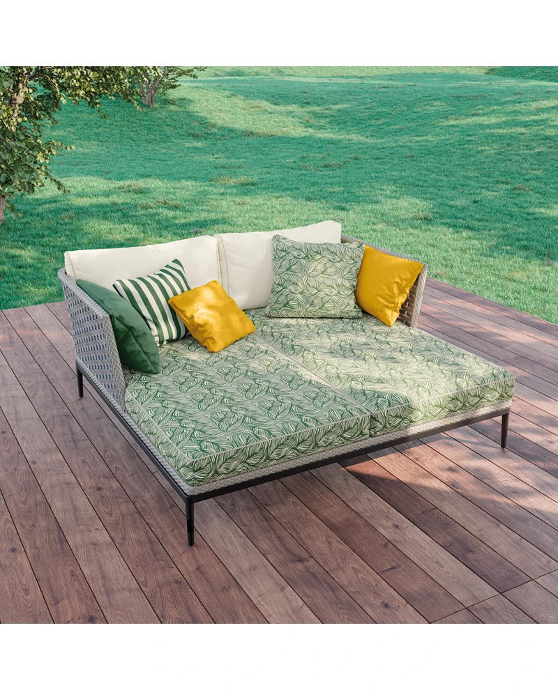 O Acquablock Malva Oliva apresenta uma composição de folhas estilizadas em verde intenso, criando um efeito visual dinâmico e natural. Um design que transmite frescor e sofisticação, ideal para transformar áreas externas em refúgios de bem-estar.